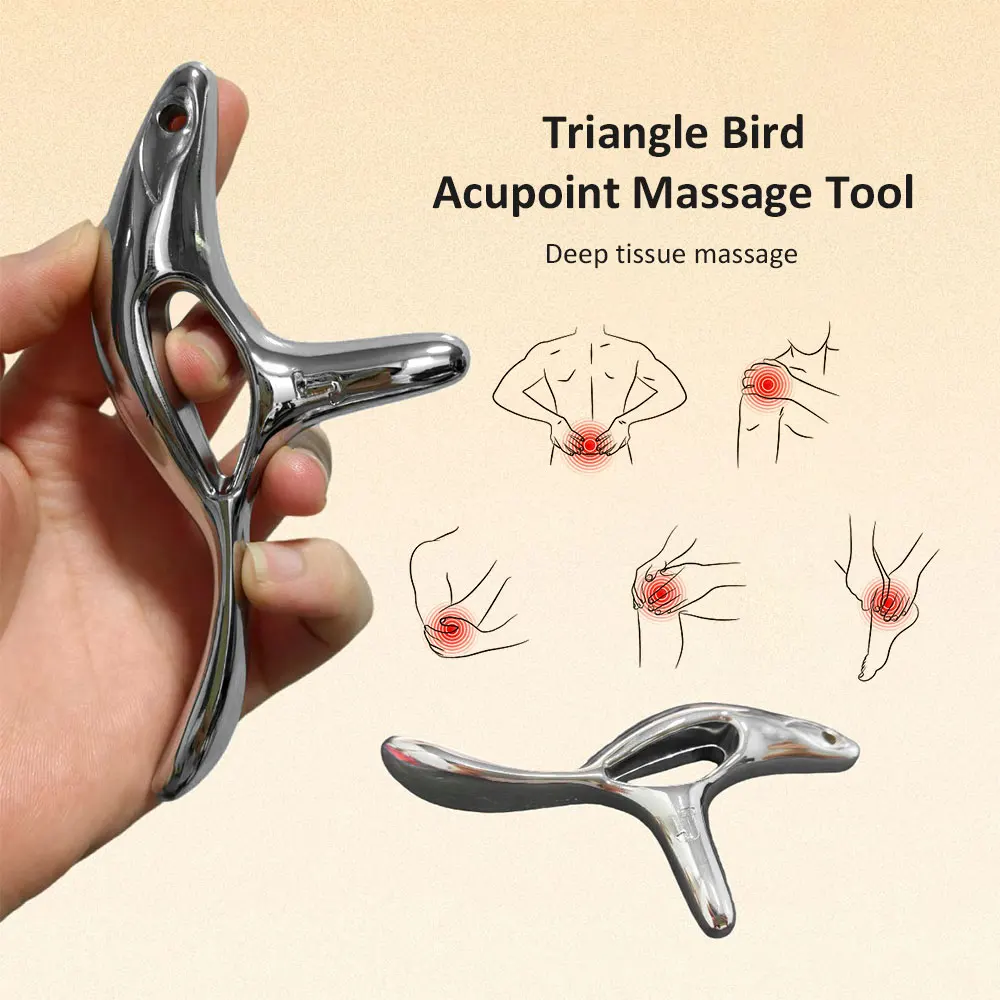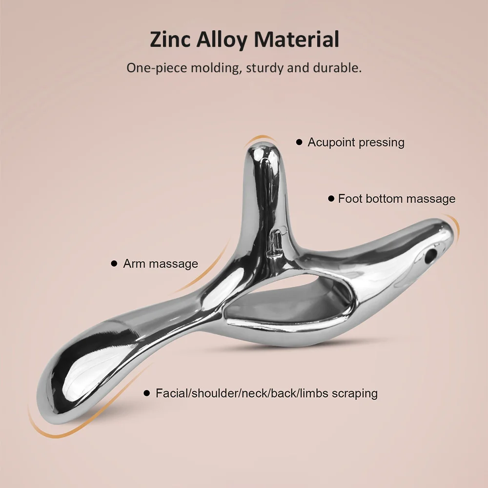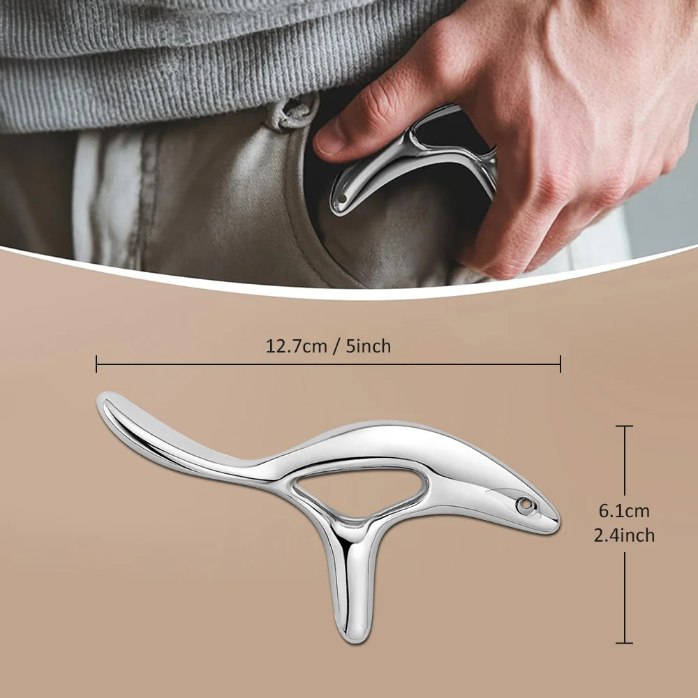 Easy Grip & Deep Tissue Relief: deep tissue massage tool features an ergonomic design, making it easy to grip and massage precisely. The balanced weight of the tool adds a benefit for deep tissue massage, relieving muscle tension. Versatile Use from Neck to Feet: Featuring a unique wing-shaped design, this Trigger Point Massage Tool can be used to apply various massage techniques such as Gua Sha, scraping, pressing, and rolling, which proves effective for deep tissue pain relief. Smooth Texture: Crafted from durable metal, the acupressure tool features a seamless mirror finish that glides effortlessly across skin without scratching. Compatible with all massage oils and lotions for enhanced performance. Thumb Saver: Designed to work with minimal thumb strain, Trigger Point Massage Tool gets noticeable results with just the right amount of pressure. Protects thumb joints and prevents long-term damage. Suitable for professional physical therapists, also a good addition to self massage routine. Portable Comfort: Equipped with a velvet pouch, this pocket-sized guasha tool is travel-friendly, ideal for self-massage anytime and anywhere, good for office breaks or home use. With the included wipe cloth, it is effortless to clean and maintain. Newly Upgraded Design: The edges of the small hole have been meticulously polished for a smoother finish, eliminating sharpness and ensuring scratch-free comfort during use. For a limited time, packaging received may vary.